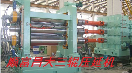 選用先進的∮610X1800mm 四輥壓延機組,能夠完成壓延膠片、帶芯帆布雙面貼膠和帶芯整體包膠工藝過程,壓延精度、生產效率、自動化控制水平都能滿足生產高等級輸送帶的要求。供膠采用兩臺∮250銷釘冷喂料擠出機。